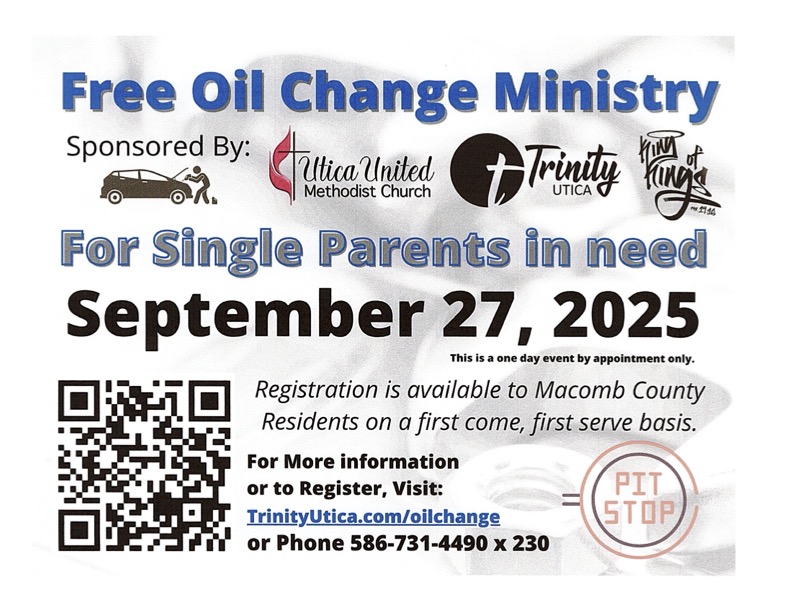 Utica partners with Trinity Lutheran and King of Kings Lutheran church for this important ministry. There are multiple opportunities to help with this event. Volunteers are needed at the different stations to work on the vehicles, volunteers are also inside the building visiting with those whose car is being worked on. Monetary donations are also accepted to pay for the supplies needed to do the oil changes.